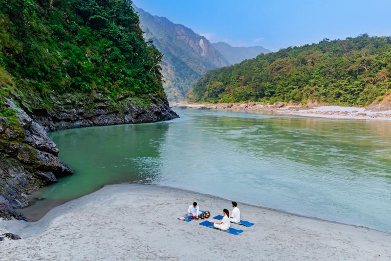 The wellness focus at ONENESS Rishikesh is a dedication to holistic well-being through an immersive luxury wilderness experience deeply connected to the surrounding nature and the sacred Ganges River. Our approach encourages disconnecting from the daily hustle to reconnect with the mind, body, and soul, through nature centric approaches, traditional Indian practices including daily sunrise oga and meditation sessions (held outdoors to imbibe the spirit of our natural surroundings), sound healing sessions in the garden or on the beach, alongside indoor and outdoor Spa treatments, which incorporate select Ayurvedic and fusion spa therapies.